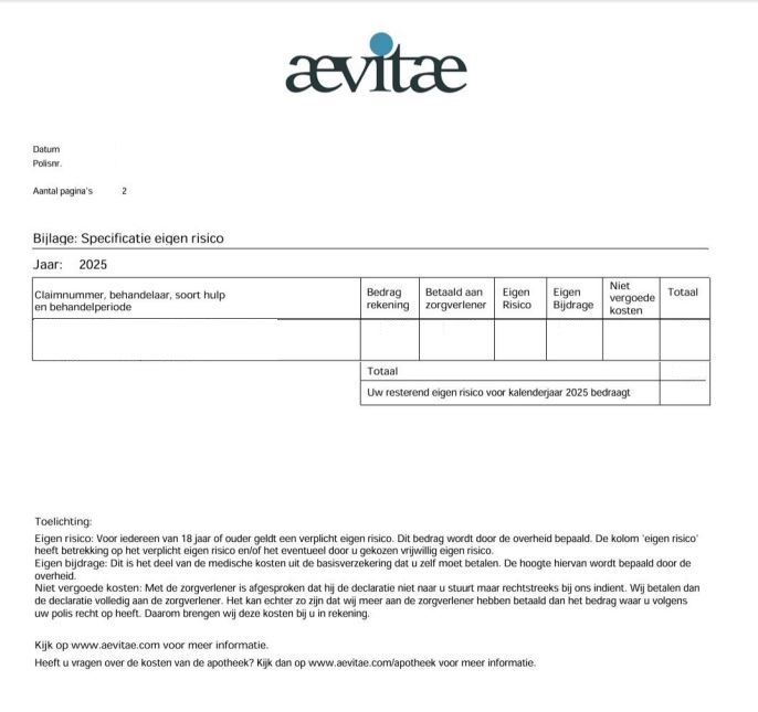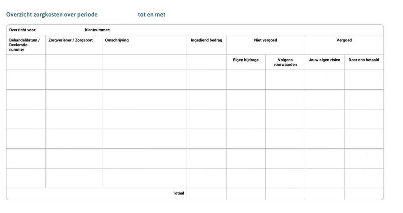 For the specified overview you need to log in to Mijn NN Zorgverzekering.