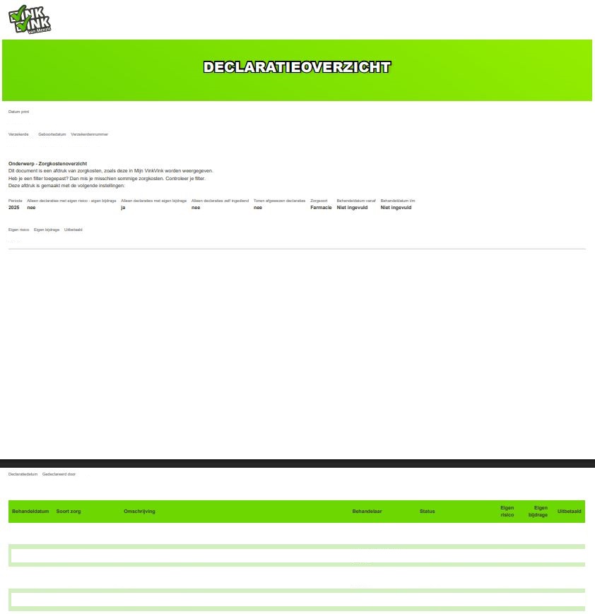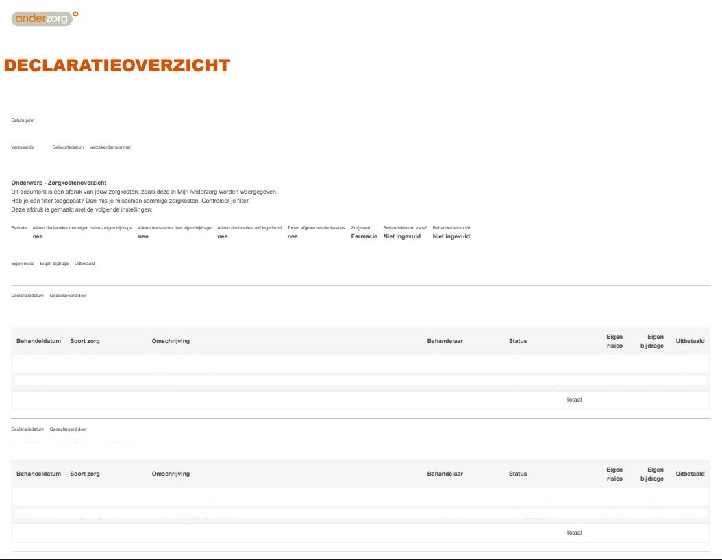 For the specified overview you need to log in to Mijn Zorg en Zekerheid.
